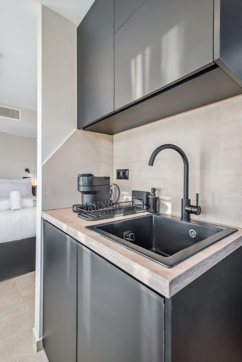 Air-conditioned Suite with a terrace featuring a kitchenette with a microwave, fridge, kettle, Nespresso Vertuo machine.